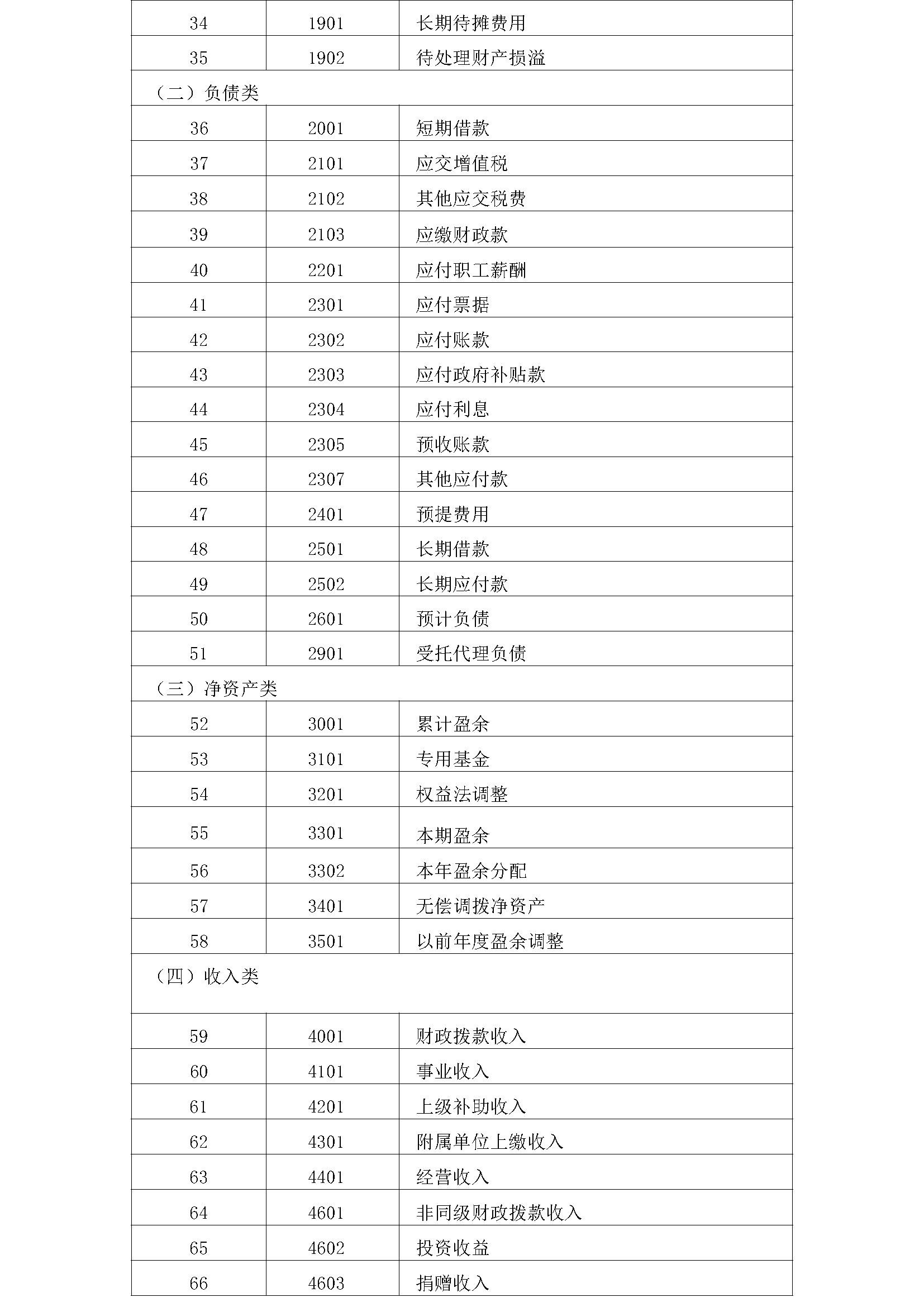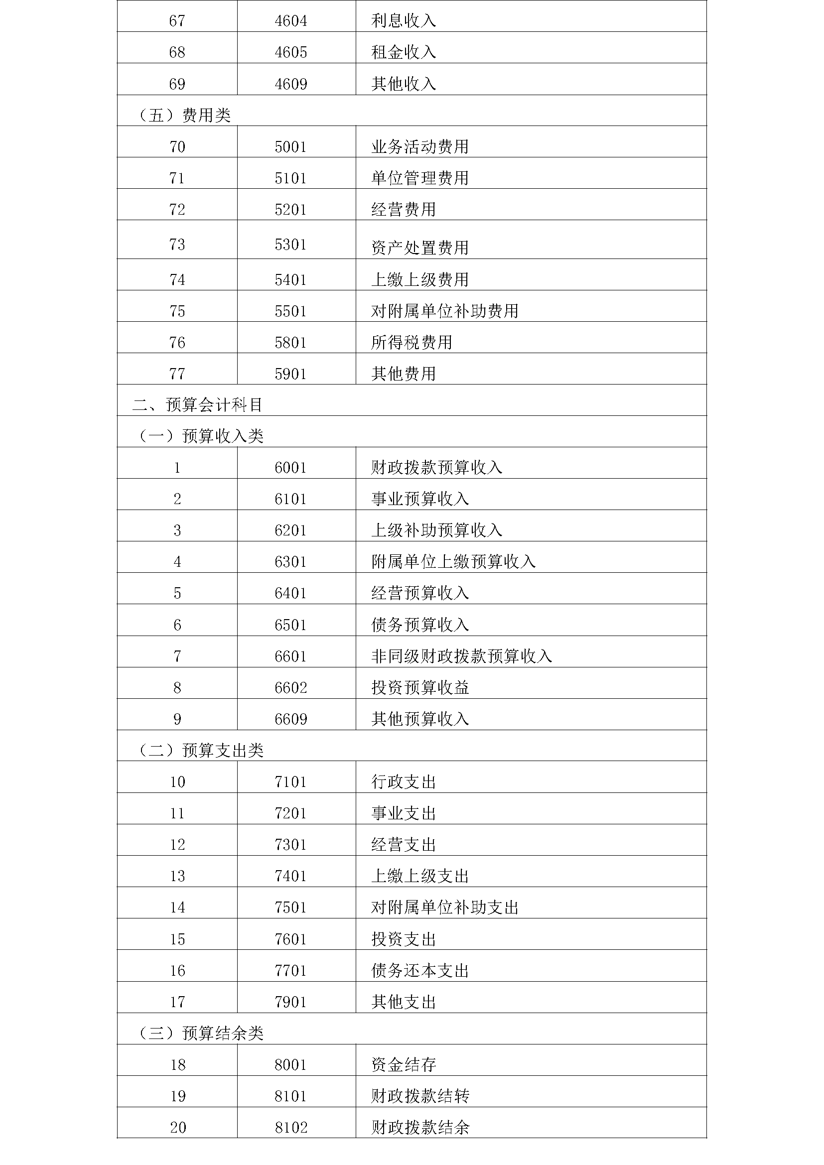 政府会计制度--会计科目名称和编号