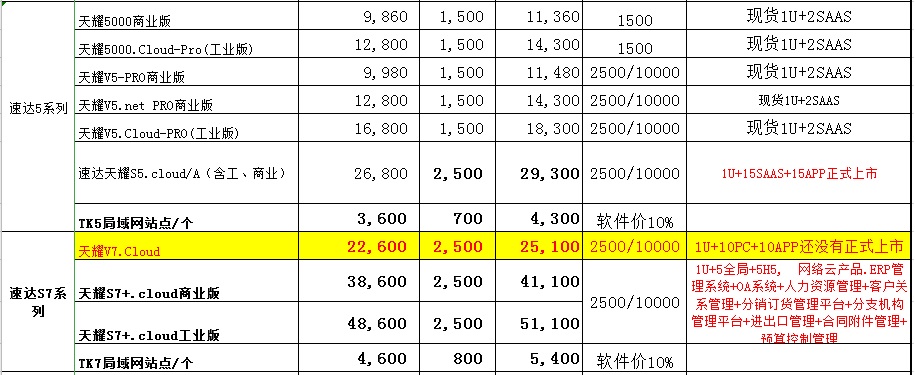 速达软件最新报价表