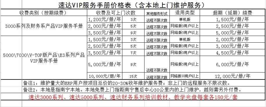 速达软件最新报价信息2025年1月1日起实施: