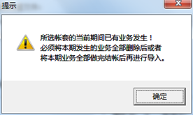 如果上年本期未未结帐会有如下提示,可选择结完帐再做新帐套启用,也可以删除本期业务数据。
