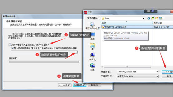 2 、建帐导航提示最后一步时,选择要年结的帐套