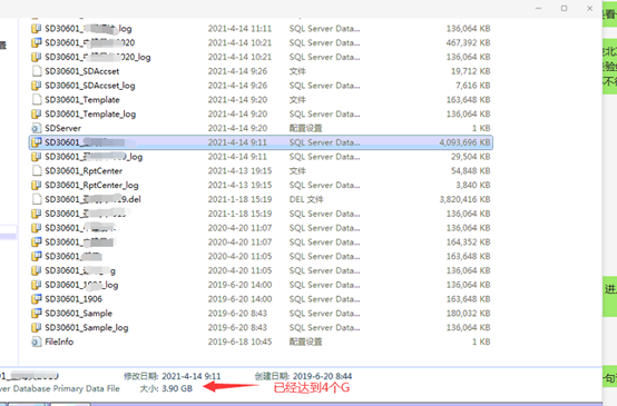 经过某经销商反复测试,DATA下的数据库主MDF文件超过1.9G时,备份文件虽然正常备份,但恢复文件时,提示出错。当主MDF文件超过3.9G时,进入后无法开单和查询,一闪而过。本次问题,查明已经到MDF文件已经到4G。