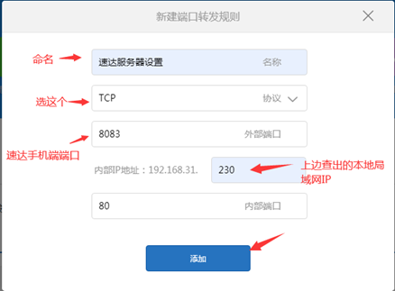再进入路由器,在“高级设置”----“端口转发”----“添加规则”