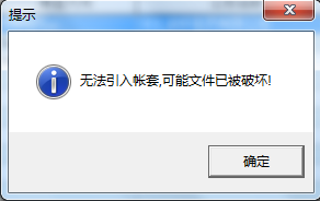 速达软件引入账套时提示:无法引入帐套,可能文件已被破坏!
